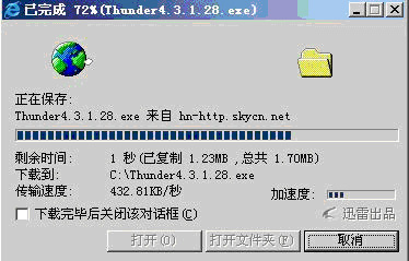 迷你迅雷安装使用起来非常方便,无需做任何设置,便可自动融合到IE中,使你的IE具有多线程及断点续传功能,并能自动恢复下载错误,你可自动下载EXE、ZIP、MP3、RAR、LZH、TAR、BIN、AVI、MPG等多种类型的文件。