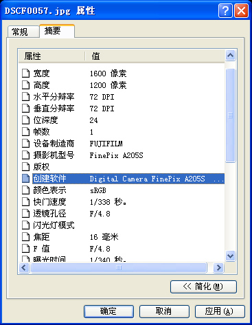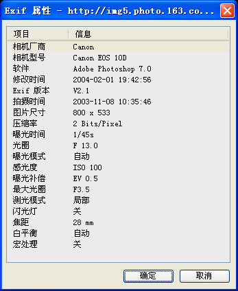 注意:用图像处理软件编辑过的数码相片有可能会丢失其Exif信息。