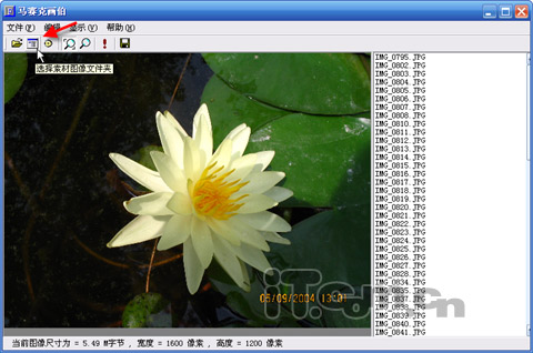 接着就是选择用来组成背景图片的小图了,是需要很多图片的,我们可以把这些素材图片统一放在一个文件夹中,然后点击工具栏上的“选择素材图片文件夹”按钮来选择图片文件夹。在选择素材图片的时候,素材图像的颜色尽可能丰富一些。(图2)