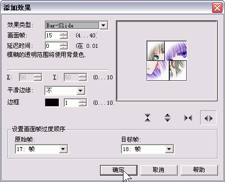7)再次选取顶部的视频F/X,选取Bar-Slide,选项设定如下: