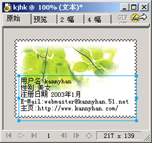 简单名片制作 1、安装Fireworks MX或Fireworks 4。 Fireworks 是 Macromedia 三套网页利器之一,它是用来画图用的,它相当于结合了 Photoshop( 点阵图处理 )以及CorelDRAW(绘制向量图 ) 的功能。网页上很流行的阴影、立体按钮...等等的效果,也只需用鼠标点一下,不必再靠什么KPT之类的外挂滤镜。而且 Fireworks很完整的支持网页 16 进制的色彩模式,提供安全色盘的使用和转换,要切割图形、做影像对应( Image Map )、背景透明,要图又小又漂亮,在Fireworks 2中做起来都非常方便,修改图形也是很容易的 。不需要再同时打开Photoshop 和 CorelDRAW...等等各类软体,切换来切换去的了。 2、安装完成后,打开Fireworks MX。 3、打开一张名片素材的图,如下图G1