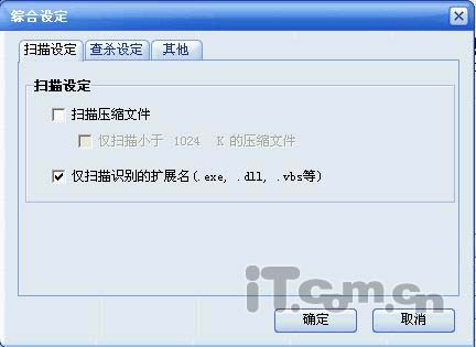 不过我们需要注意的是在完全查杀的时候,软件默认不会对压缩文件进行扫描,要想对其扫描,只要依次点击“工具――综合设定”在弹出的扫描设定窗口中选择扫描设定选项卡,选中“扫描压缩文件”前的小方框就可以了(如图3所示)。