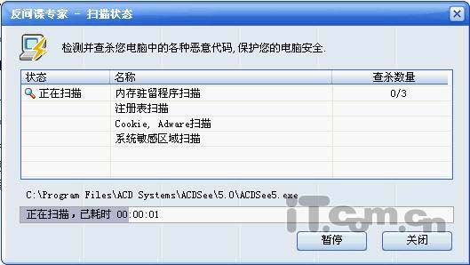 无论是点击快速查杀还是完全查杀,都会弹出一个扫描状态窗口(如图4所示)。