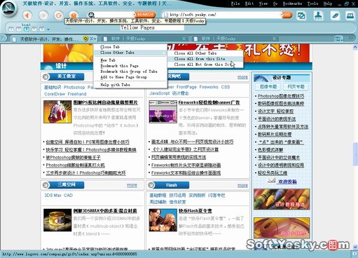每个标签按钮的右侧有一个按下箭头。点击即可出现按下弹出菜单。选择其中选项用来关闭打开的一个或者全部标签。如图2所示。