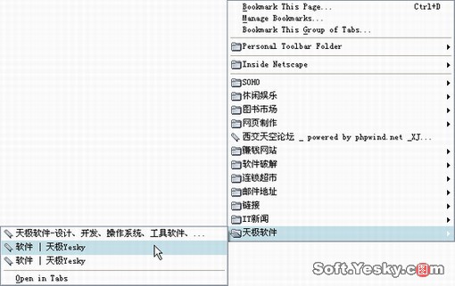 选择Bookmark all tabs in a folder前面的复选框就可以将整个标签组放在一个文件夹下,单击OK按钮。以后单击Bookmarks菜单,此时就会出现先前保存的标签组,如图4所示。