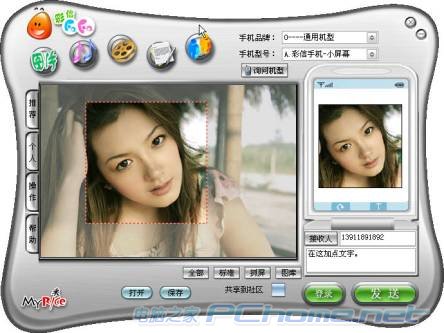 通过“彩信FaFa”,您可以将电脑上存储的各种格式的图片,MIDI/RMI音乐,Flash/GIF动画,MPEG/AVI/ASF/WMV视频,以及任意长度的TXT文档,以非常简单的操作,发送给手机