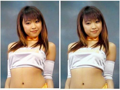 好了,这个肤色看上去正常了(也许你觉得还是不动色彩的好,那当然可以不作这步调整)。 提到饱和度的调整,家庭作业又来了。在Photo Shop和Turbo Photo里面把这张图饱和度调到最大,你可以看到…很大的不同,是把?这是因为Photo Shop和其他一些软件在加大饱和度的时候是无论内容,统统加大。原来灰色的部分看上去没有颜色,但实际上由于噪声不可能是纯粹的灰色,饱和度加大后,这些噪声就看得特别难受了。Turbo Photo特别考虑到这一点,于是乎作了特别的处理,饱和度调整的效果自然多了。 等了这么久,接下来才是整个调整中最激动人心的部分——自动的数字美容功能! 首先去掉模特脸上和身上的痣。在Photo Shop里面,一般是用涂抹或者照相机工具将痣旁边的皮肤复制并覆盖贴到痣上以达到目的。有经验的用户可能体会到,当痣恰好在明暗变化的边缘上的时候,就不是那么好弄了,其结果总是不自然。在Turbo Photo中,这个操作简单了许多,首先设置刷子的大小,以刚好覆盖需要去除的痣的大小为宜,然后在痣上轻轻一点,就能去除。别小看这轻轻一点,在其背后,Turbo Photo会自动帮助您从周围的皮肤中选取最适合的一块,并用这一块来覆盖有痣区域。如果遇到痣恰好在明暗边缘的时候,这种自动匹配的算法可以获得比人工观察更准确的结果。 在绝大多数情况下,这步功能都能很好地完成。但是,有时候,它也会失灵,首先是可能找不到最优的皮肤,其结果看起来不自然,或者根本找不到如何替换,其结果是原图不变。遇到这两种情况,请调整刷子的大小重新操作,往往就可以了。遇到不满意的结果,还可以通过左边的‘回到上一步’取消。 取了痣后是调整肤色,一共有四种选择:‘保持不变’,‘更白’,‘更鲜艳’和‘更白加更鲜艳’。更鲜艳可以使肤色看起来红润一些。 也许您会问,调整肤色是否会影响到非皮肤的其他画面部分?答案是,不会!因为Turbo Photo会自动的识别出皮肤来,处理只会在识别出来的皮肤部分工作,不会影响到其他部分。那么,处理出来的结果会不会不自然呢?也不会,因为识别出来的皮肤部分和非皮肤部分之间会有若干像素(跟图的大小有关)的过渡(2.3版本以上)。在Photo Shop里面,想要把皮肤部分选择出来做类似调整,恐怕需要3,5分钟吧?现在,Turbo Photo自动就完成了。