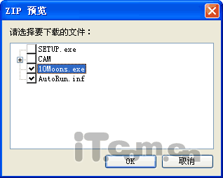 稍等一会就可以弹出一个ZIP预览窗口,我们在这个窗口中把不要下载的文件取消掉,点击“OK”按钮就可以了,这样就可以下载压缩文件中自己需要的的内容了(如图2)。