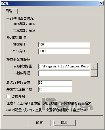 软件安装完成后,启动它,这时在任务栏右小角处出现PPLive的图标(如图1),右键点击它,选择“配置”项首先对软件进行设置,这里端口等无需我们修改,主要将播放器的路径填写正常就OK了,一般如果电脑中有安装Windows Media Player和RealPlayer之类软件的话,软件也会自动填写好路径的(如图2)。“UPNP开启”项对通过共享上网的内网用户来说意义重大,它可开启“内网穿越”功能,从而使电视播放起来和外网一样流畅,这个功能也是其他多数P2P电视软件不具备的。