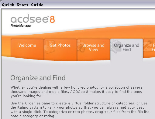 去年7.0版本推出的消息在各网站吵的沸沸扬扬,时隔一年,ACDSee再次推出8.0新版。虽然没有去年的热火,但是我们相信作为图像浏览和管理的“老大哥”软件,ACDSee的每一个动作都会倍加引人注意,给人惊喜。以下是ACDSee8的界面截图: