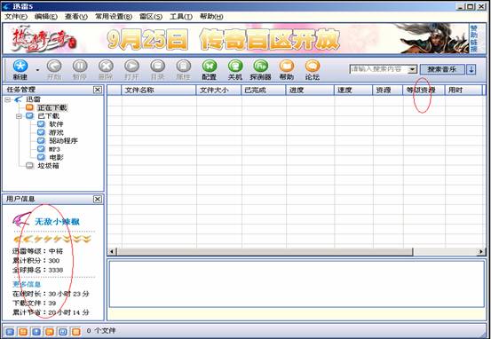 迅雷5正式版满足你的需求。如下图所示,当你经过简单注册成为迅雷用户后,你就获得了取得进入迅雷新推出的互动社区——“雷区”的通行证,在雷区里,你的在线时间和下载文件量决定了你的积分,随着积分的增加你的等级就会跟着变化,如最开始是“列兵”,依此为“少尉”、“中尉”、“少校”、“中将”、“上将”等,最高等级是“三军统帅”。等级越高,迅雷返回的资源就越多,下载就越快!哦!还有独一无二的全球排名呢!哈哈,资深用户是不是很有成就感啊?除此之外,迅雷还会帮你统计下载了多少个文件、为你节省了多少时间、克服了多少死链等等,所有这些功能都完全免费,爽吧!