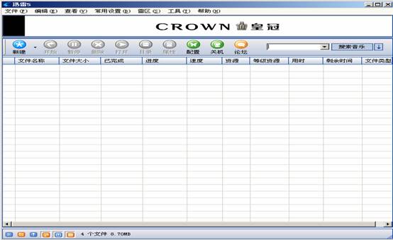 启动后迅雷5后,首先出现的是迅雷简洁界面(如下图所示),整个页面干净、清爽,使人感觉赏心悦目,此外操作非常简单,非常适合对下载工具不熟悉的初级用户。