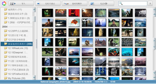 扫描完毕后进入软件主界面,你会发现Picasa已经将所有包含图片的文件夹都按照时间先后顺序排列在左边,(图2)并且都放在了一个自定义图片集“硬盘上的文件夹”中。这种管理方式可以很直观的让你查看修改硬盘上的图片,即使有些图片可能你已经遗忘了,Picasa还是能轻松的帮你找出并呈现在你面前。这种图片管理方式的好处就在于最新的图片总是排列在前面,因此你总能很快找到你最近查看和修改的图片。你也可以自己创建图片集,将不同类型的图片做分类管理。