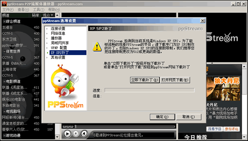 安装完毕后,首次运行,软件会自动检测电脑的操作系统,提示windows XP SP2用户安装打开TCP/IP连接限制的补丁、内网用户可以检测并打开UPNP支持,提高传输效率,以前这些都要手动操作,即使PPStream官方论坛中有很详尽的教程,但是依然令很多菜鸟摸不着头脑,现在方便多了,真是傻瓜都会了,赞一个!