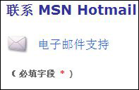 4、在弹出的页面中完成“联系MSN Hotmail 的电子邮件支持”,带“*”必填