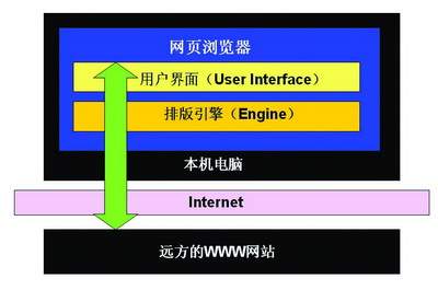 图1 浏览器的逻辑结构,由排版引擎和用户界面复合而成。