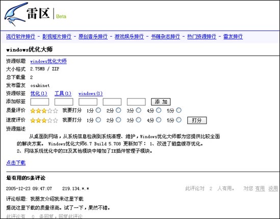 所有这些问题由雷区(Beta版)来解答。雷区旨在网罗互联网上最cool的资源,集极速下载、资源发布、相关推荐、热门资源排行、关键词搜索、点评、评分等等于一身,当然雷区的建设离不开广大雷友的积极贡献啦…雷友们心动了吗?那么就赶紧体验一下吧。