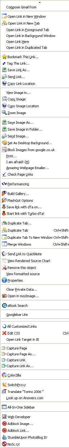 几个小时使用后,Firefox竟然依旧保持稳定,虽然,速度略慢--看看截图就知道安装100个插件后的浏览器是多么...可观了...