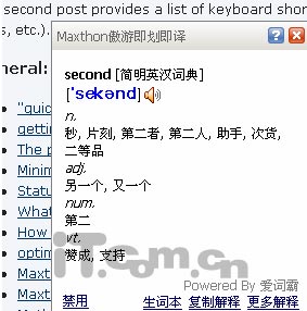 傲游1.5.2版发布 新增“划词翻译”功能 傲游