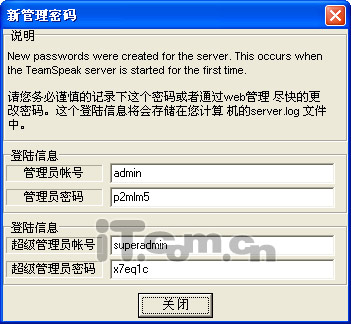 先下载TS的服务器端软件,下载后安装它,首次运行软件有个“新管理密码”的窗口,一定要记住里面的帐号和密码,在后面我们要用到的,这个密码是随机生成的,每次安装都不一样的,在管理界面后可以修改密码(如图1)。