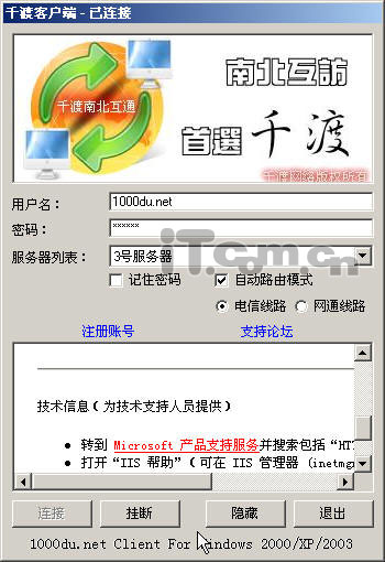 千渡目前只联接了电信和网通的网络,对其他宽带接入暂时没有效果。