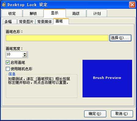 而且让阿文感到惊奇的是,Desktop Lock V7.0居然还能够在锁定电脑之后播放指定的媒体,可以是MP3音乐,也可以是视频文件。另外其他用户还可以在锁定电脑上进行留言,这样电脑的主人就会知道谁找过他。留言的方法很简单,只需用鼠标左键,就可以在屏幕上留言。而且也可以设置画笔的颜色、字体和宽度等参数,根据自己的心情来进行选择(图5)。