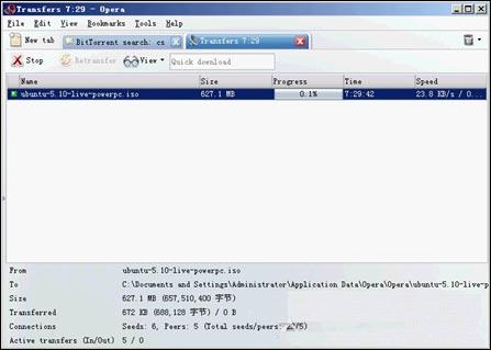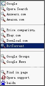 在新版Opera浏览器中集成了BT下载功能,可以快速搜索、下载互联网上的BT种子文件,用户无需再安装其它的BT下载客户端,就可以轻松下载大容量文件,如视频、游戏。