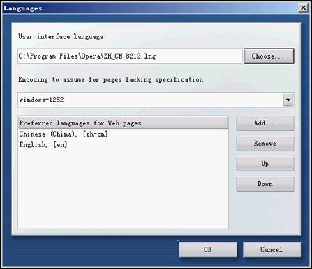 登录Opera中文社区(http://www.opera.org.cn),下载简体中文语言包。下载该语言包解压后,把解压文件复制到浏览器的安装目录,依次点击"Tool-Preferences-Details"菜单(如图1所示),然后在弹出窗口中选择刚刚下载的中文语言包,最后点击"OK"按钮(如图2所示),这时就会发现浏览器主界面变为中文界面了。