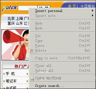 比如我们要把太平洋电脑网的"快搜"搜索添加到Opera浏览器的地址栏搜索中,只需打开太平洋电脑网,然后右键点击首页上的快搜搜索框,在弹出菜单中选择"Create Search"菜单项(如图10所示)。