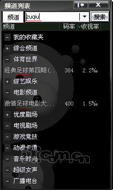 PPStream的安装非常简单,一路选择下一步就可以顺利安装,当然,如果用户也可以自己指定软件的安装目录,默认的安装目录是C:Program FilesPPStream。安装完成之后PPStream就会在桌面和快速启动栏里添加快捷方式,双击启动即可。PPStream的界面由三部分组成,左侧是频道列表和搜索功能,用户可以直接通过列表选择频道收看或者通过搜索栏搜索节目,搜索栏支持拼音模糊搜索,使用非常便捷(如图1);中间是PPStream的播放界面,操控方式同常见的媒体播放器完全相同,这里就不赘述了;而右侧则包含两个部分,上半部分是频道预览,当用户选择频道后会自动对该频道播放的内容进行截屏显示,供用户参考是否观看,下半部分则是资讯导航,用户在这里可以得知PPStream各项最新资讯以及热播节目的情况。