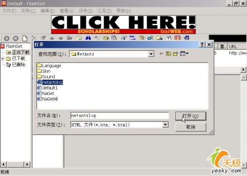 网络蚂蚁在完成一项下载任务后,程序会自动记录下该下载任务的信息,并会以HTM网页的格式保存在安装文件夹下,如C:Program FilesNetAnts etantslog.htm(如图1)。这样,当我们到FlashGet中就可以通过文件菜单下的处理页面文件命令来导入NetAnts的这个下载信息文件。