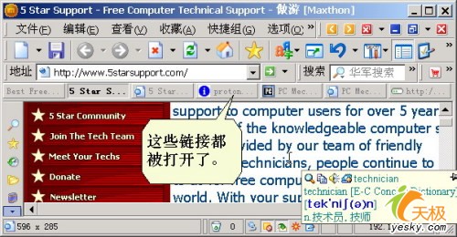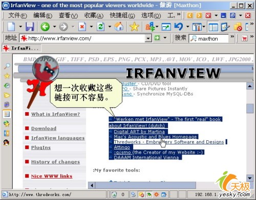 接下来,用鼠标选中图1中欲收藏的链接,然后将它们向右拖放,此时这些被选中的所有链接都在新窗口中打开了(如图3)。