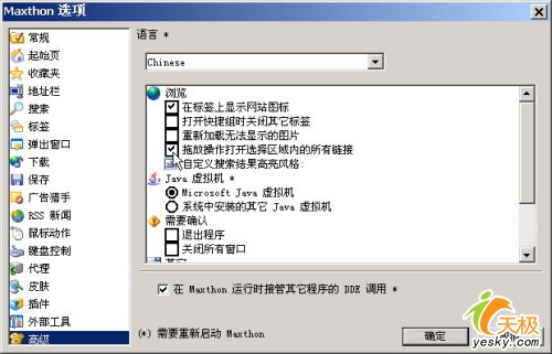 启动后单击“选项→Maxthon2选项”,在打开窗口中的左侧窗格中单击“高级”,再在右侧窗口中选中“拖放操作打开选择区域内的所有链接”项(如图2)。