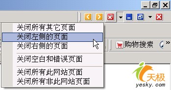 接下来,选中第一个欲收藏的网页标签,再单击工具栏上的扩展关闭按钮,并选择“关闭左侧的页面”(如图4),此时只剩下我们要的网站了。