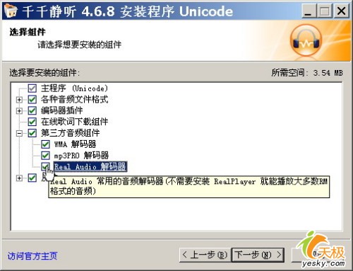 下载并安装最新版本的千千静听,该版本改进歌词下载功能,减少对服务器造成的压力,以支持更多用户,还改进了向MSN发送正在收听的歌曲信息的功能,解决与最新的MSN8版本的兼容性问题。同时修正了OGG格式的文件属性无法保存的问题。在安装时,要注意的是,一定要安装所有的编码器(如图2),因为迅雷下载下的歌曲不完全是MP3格式的。如果不安装这些解码器,有可能会出现无法收听的情况。