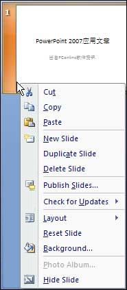 填写好第一张之后,在左边栏处点击右键,选择New Slide命令,添加新幻灯片。