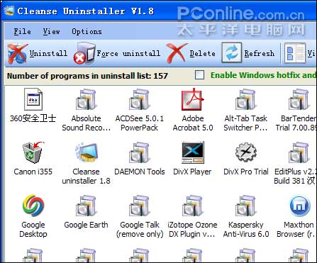 小提示:平时,也可以使用Cleanse uninstaller进行常规软件的卸载操作,这样卸载后,注册表、硬盘中相应的项目也将会被彻底清除,避免手工再次清理了。