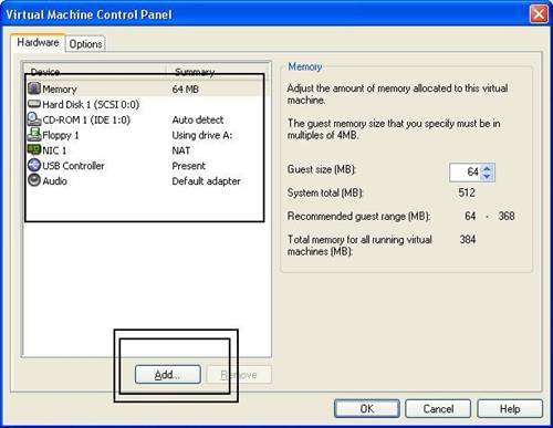 添加一个设备也含简单,只要add就可以,添加过程就像刚开始配置安装虚拟机过程一样。