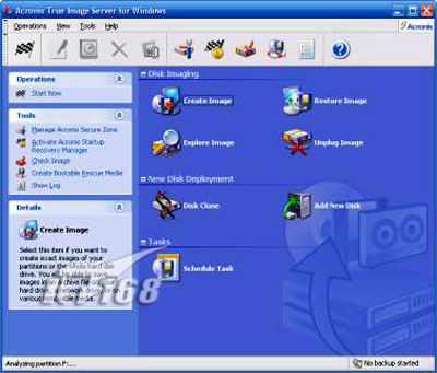 说到系统备份,一般人肯定都会想到Ghost。但是Ghost的操作模式,对于很多初级用户来说都不太熟悉。因为很明显的DOS形态,和用关了Windows下的向导模式差别很大。而且Ghost虽然有Windows版,但是在Windows下创建Windows分区镜像的时候很容易出问题。而“Acronis True Image”(以下简称为“ATI”)的出现又让大家在备份数据时有了一个新的选择。
