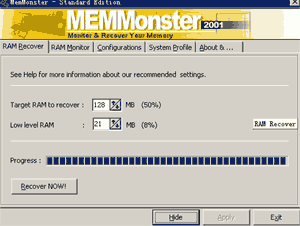 最后,是将 MEMMonster 2001 缩小到系统托盘中以免打搅工作的隐藏(Hide)按钮