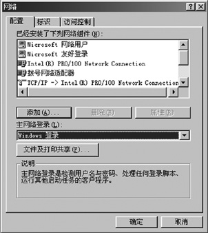第三步是设置网络相关项目。我们还是要运行"控制面板"→"网络",此时出现"网络"对话框,我们选择"配置"标签页,在"主网络登录"下拉框中选择"Windows登录",单击"确定"即可(图2)。最后系统要求我们必须重新启动计算机,单击"是",Windows设置才会生效!