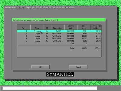 因为这里我们只有一块硬盘,所以我们只需要选中它即可,选中“OK”之后,就会显示该硬盘的分区了,一般来说我们都是要备份第一个分区也就是C盘(图3)。