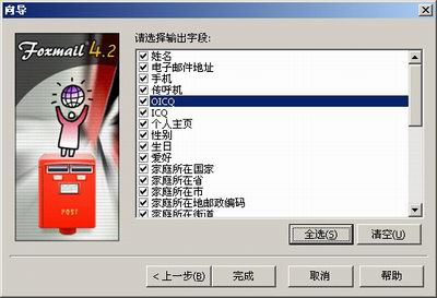 选择要备份的字段(图4),点击“完成”按钮就提示地址成功备份的消息了(图5)。