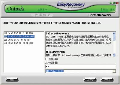 2、在右侧选择任何一种数据修复方式都会出现相应的用法提示,如我使用DeletedRecovery项来查找并恢复已删除的文件时,就会在界面右侧出现相应的使用提示(见图2)。