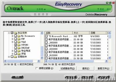 注意事项 通过这次教训,我对提高恢复误删文件的成功率也很有感受。 首先,提高恢复误删文件的成功率的关键是:一定不要往原来存放该文件的分区写入新数据。大家都知道,在Windows中,虽然把文件彻底删除了,但其实文件在磁盘上并没有消失,只是在原来存储文件的地方作了可以写入文件的标记,所以如果在删除文件后又写入新数据,则有可能占用原来文件的位置而影响恢复的成功率。 其次,不要高兴得太早。当看到丢失的文件名又一次出现在眼前时真是异常兴奋,但是,当你打开有些文件时才知道其实都是乱码,特别是文档资料,明明查看文件大小不是0,而且文件名完好,以为文件可以完全恢复,谁知再打开看却是一堆乱码,真是欲哭无泪。所以我要提醒大家一定要将恢复的文件一一验明正身才可进行恢复操作,否则再想重新做一次恢复就难了。 另外,一定不要在目标分区执行新的任务。这一点从概念上容易理解,但实际要做到却不是那么容易的。因为Windows会在各个分区多多少少生成一些临时文件,加上还有在启动时自动扫描分区的功能,如果设置不当或操作上稍不留意,可能已经写入了新文件你自己都不知道。所以在确认文件完全恢复成功前不要对计算机作不必要的操作(包括重新启动), 特别是当你发现误删除了文件而必须安装恢复软件时,一定不要把恢复软件安装在恢复文件所在分区。例如你要恢复的是C盘中被误删的数据,而安装软件时默认路径也是C盘,此时你若一路回车安装的话,可能就要追悔莫及了。这一点FinalData考虑得就比较周到,在选择了安装路径后会跳出个对话框提醒你注意安装路径。 以上是我使用EasyRecovery和FinalData两款恢复软件的心得,在这次拯救过程中,因为不放心一款软件的恢复效果,我将这两款软件全都用上了,通过比较我发现两款软件在恢复文件上各有优势:EasyRecovery在恢复误格式化、误删除的文档特别是Excel文件时效果很好,而FinalData在恢复图片文件和Zip文件时效果较好。 虽然通过恢复解决了一些问题,但解决问题总不如不出问题,最可靠的办法是养成良好的习惯,定时备份你的宝贵文件,以免到时吃后悔药。