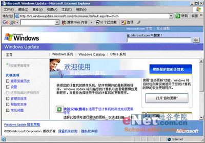 除了可以用SP和Hotfix来升级系统外,微软还提供了一种名为“Windows Update”的打补丁方式,连上Internet,然后点击Windows Update,一个浏览器会自动弹出并将你带到升级站点。点击“扫描更新”,这个站点将检查你的Windows XP组件并列出现有的全部升级。选择你希望的升级,之后这些升级将被下载并安装到你的计算机上(如图1)。