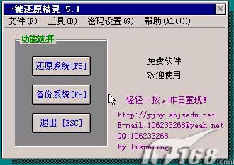 尤其是“创建修复盘”选项更是维护电脑的好帮手。软件虽小,但容纳了这么这么多功能,可见作者匠心独到,下足了功夫。一键还原精灵完全免费,大家可以下载来试试,才能更好地品味软件的功能。