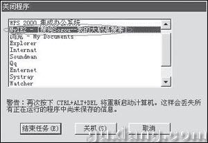 四、按一次“Ctrl+Alt+Del”键,调出“Windows任务管理器”窗口(这里指的是在Win 2000/XP系统中,而在Win 98/Me系统中是调出“关闭程序”窗口),选择所要关闭的程序,再选择“结束任务”按钮即可。这种方法尤其适用于程序出现了问题或者出现假死机不能继续运行,在当前程序界面中无法进行退出操作时使用。