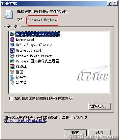 具体表现是在打开IE时弹出选择文件打开方式的对话框,在选择使用“Internet Explorer打开后,又弹出资源管理器窗口并定位到自己的个人文件夹。