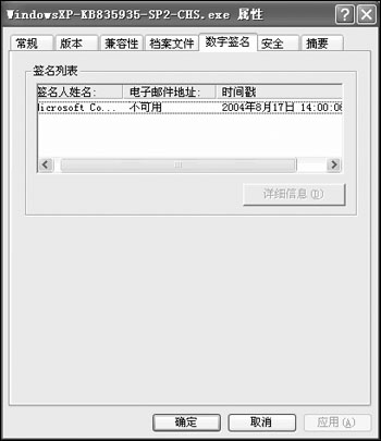 数字签名是允许用户验证的,如果某文件没有有效的数字签名,那么将无法确保该文件确实来自它所声明的来源,或者无法确保它在发行之后未被篡改过(可能由病毒篡改)。此时,比较安全的做法是,除非你确定该文件的创建者而且知道其内容,那么才能安全地打开,否则建议不要轻易打开该文件。凡是通过了微软数字签名的硬件或软件,其外包装上一般都会出现“为Microsoft Windows XP设计(Designed for Microsoft Windows XP)”的徽标。